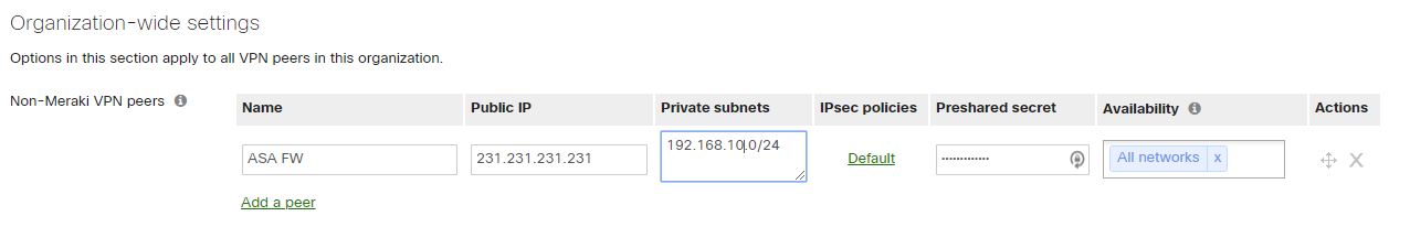 Then let’s move over to the Meraki part. This part is really easy compared to the ASA part. There isn’t much configuration to do on the Meraki to get everything up and working,.